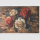 This decoupage design features beautifully hand-painted red and peach-pink roses against a rustic wood background, blending timeless floral elegance with a warm, vintage charm. The rich hues and wood texture create a romantic and sophisticated aesthetic, perfect for farmhouse and shabby-inspired decor.