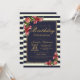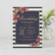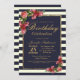 Roses Navy Stripes and Gold Birthday Party Invitation