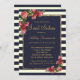Roses Navy Stripes and Gold Sweet 16 Invitations