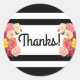 Roses on Modern Black & White Stripes Thank You Classic Round Sticker