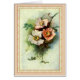 A lovely vintage print of a branch of roses in full-bloom. The colours of the roses - white, peach, and soft pink – stand out against the green leaves of the branch.