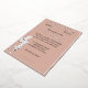 This is a 5' x 7" wedding invitation, shown in pale cinnamon rose with silver foil accents. This is genuine Italian foil trim, available in gold, silver, and rose gold. The foil accents include the bride and groom's name and 'Our Wedding', a rose design, a horizontal line, a whimsical heart, and a foil outline on the front. The reverse includes an 'Our Special day' motif, with details about the wedding.