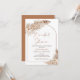 Faux rose gold modern calligraphy bridal shower invitation in a bohemian style featuring two lovely floral arrangements with pampas grass in natural and terracotta tones and a terracotta arch.