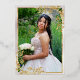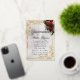 This elegant invitation is embellished with a floral bouquet of red roses and an elegant frame of gold leaves with a place holder for the young lady's photo on the back. "Quinceanera" and the girl's name are in foil. Designed to coordinate with the "Floral & Gold Leaves - Black & Pearl" Quinceanera Collection. To change details, click «Personalize». To move the text or change the text size, font, or color click «Click to customize further»