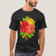 I give wanted to give this a 4 instead of a 5 because these Basic DARK T0shirts run unexpectedly SLIM or Narrow. Which is great if you do not have a potbelly, but I have a paunch. It isn't the shirt's fault that I've got a beer belly. The design and shirt itself is a quality cotton shirt. The color is more of a deep purple, but still a very pretty color. The Basic DARK T-shirts run a bit SLIMMER than the Basic Ts. The neck is a fraction narrower (or seems to be narrower) also. I'm a paunchy middle-aged woman and my neck is 12 inches (31cm) thick and the neckline fell about the same as in the photo of the man, and I had the desire to tug it a bit. So if you're a thick necked man or like loose shirts, be aware these are slimmer shirts. Once I get rid of my lockdown paunch it'll look great. The shirt washed well in cold water with no apparent bleeding. We don't have a dryer, so it hung dry. Did not shrink. Love the colors and the design. The design looks smaller on my shirt than it does on the model on-line. But still, it looks good on the shirt. The printing looks as it does on the model, just the size seems fractionally smaller. Washed garment in cold water, hung dry and design appeared unaffected.