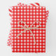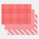 Three flirty geometric patterns fill these wrapping paper sheets with modern romance perfect for Valentine’s Day gifts or gifts for someone special just because. A fun red and white gingham plaid pattern. A red, pink, and white square pattern. And a pink, red, and white modern candy cane stripe pattern.