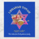 Stylish Israeli blue ROSH HASHANAH Jewish New Year wine bottle labels, showing a Star of David with a bowl of apples and a dish of honey. Above is the greeting L'SHANAH TOVAH, written in white and faux gold typography, followed by ROSH HASHANAH in Hebrew text at the bottom. You can also replace the placeholder name and greeting. ALL TEXT (excluding background text) IS CUSTOMIZABLE, so you can create your own preferred text and spellings (eg. Shana Tova), with the easy-to-use templates. Ideal to use for corporate branding and seasonal gifts for your clients and customers. Choose from a wide selection of stylish, customisable Jewish celebration cards and gifts designed by Berean Designs.