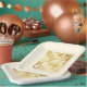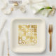 Rosh Hashana Modern Geometric Pattern Paper plate with Faux Gold. Hebrew & Rosh Hashana Symbols + Space to add your name or greeting Jewish New Year wishes. Hebrew says "L'shana Tovah ". A classy, up-to-date look, is a great way to set a beautiful, worry-free Holiday table & wish friends & family a Shanah Tovah- A happy and sweet Jewish New Year. If you want to see a variation of this design please message us or email bestdressedbread@gmail.com.