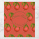 The design features a pomegranate with red fruit and green foliage on a red background.