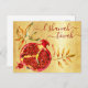 Rosh Hashanah Watercolor Red Pomegranate on Gold Holiday Postcard