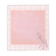 Ideal for a baby shower, this 5.5” x 6” notepad has an image of Rosie, an adorable knitted pink baby giraffe with white spots, shiny pink hooves, and a big smile on a pink gingham and pink swirl background. See the entire Kids’ Notepad collection in the PARTY FAVORS section.