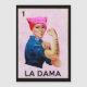 Iconic picture of Rosie the riveter in a pink pussy hat with the word RESIST tattooed on her forearm. Light pink half-tone vintage Mexican pink background. Feminist design for latinas! A custom loteria card art format. Resist corruption in the USA and fight for rights and democracy north and south of the border. We can do it!