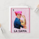 Perfect flat card to invite women to rallies and marches across the USA. Iconic picture of Rosie the riveter in a pink pussy hat with the word RESIST tattooed on her forearm. Light pink half-tone vintage Mexican pink background. Feminist postcard for your best friend! A custom loteria card art format. Resist corruption in the USA and fight for rights and democracy north and south of the border. We can do it!