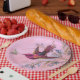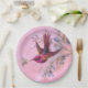 A rosy hummingbird flutters through the flower bed in pursuit of a little green butterfly. The soft, delicate background creates a hazy suggestion of flowers and sky. The colours of the hummingbird, magenta, rose and pink, were altered and brighten to create this feminine style statement for decor, accessories and correspondence.
