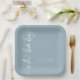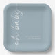 Rotated Calligraphy Name Dusty Blue Oh Baby Shower Paper Plate