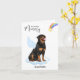 Send heartfelt condolences with a custom Rottweiler angel memorial sympathy card. This Rottweiler memorial card features a watercolor Rottweiler dog with angel wings and a rainbow and shooting gold star. Personalise with name front, and your personal message inside . This Rottweiler sympathy card is a perfect dog remembrance keepsake and pet loss sympathy card. COPYRIGHT © 2022 Judy Burrows, Black Dog Art - All Rights Reserved. Rottweiler Angel Dog Memorial Pet Loss Sympathy Card