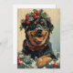 Wishing you a festive season filled with joy and warmth! This Christmas card features a loveable Rottweiler, donning a Santa hat with a twinkle in its eye. The playful canine spirit brings a touch of holiday cheer, promising a season of merriment and tail-wagging happiness. Share in the joy as this festive friend spreads Christmas magic, making your celebrations extra special.