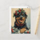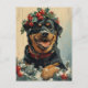 Wishing you a festive season filled with joy and warmth! This Christmas card features a loveable Rottweiler, donning a Santa hat with a twinkle in its eye. The playful canine spirit brings a touch of holiday cheer, promising a season of merriment and tail-wagging happiness. Share in the joy as this festive friend spreads Christmas magic, making your celebrations extra special.