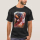 I give wanted to give this a 4 instead of a 5 because these Basic DARK T0shirts run unexpectedly SLIM or Narrow. Which is great if you do not have a potbelly, but I have a paunch. It isn't the shirt's fault that I've got a beer belly. The design and shirt itself is a quality cotton shirt. The color is more of a deep purple, but still a very pretty color. The Basic DARK T-shirts run a bit SLIMMER than the Basic Ts. The neck is a fraction narrower (or seems to be narrower) also. I'm a paunchy middle-aged woman and my neck is 12 inches (31cm) thick and the neckline fell about the same as in the photo of the man, and I had the desire to tug it a bit. So if you're a thick necked man or like loose shirts, be aware these are slimmer shirts. Once I get rid of my lockdown paunch it'll look great. The shirt washed well in cold water with no apparent bleeding. We don't have a dryer, so it hung dry. Did not shrink. Love the colors and the design. The design looks smaller on my shirt than it does on the model on-line. But still, it looks good on the shirt. The printing looks as it does on the model, just the size seems fractionally smaller. Washed garment in cold water, hung dry and design appeared unaffected.