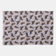 Cute Rottweiler dogs sit and stand with black and tan coats with scattered dog bones and pawprints pattern.