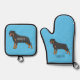 Rottweiler dog cartoon illustration oven mitt & pot holder set