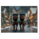 This festive design captures the joyful spirit of the holiday season, featuring an adorable dogs.Nestled in a winter wonderland, complete with a decorated Christmas tree, and beautifully wrapped presents. Snowflakes gently fall, adding a magical touch to the scene, while the vibrant colours of the holiday decorations create a warm and cheerful atmosphere.