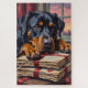 This dramatic, yet tender oil painting showcases the loyalty of the Rottweiler, depicted as a gentle guardian resting its head on a stack of vintage Valentine's love letters. A powerful and heartfelt design for Rottweiler enthusiasts.