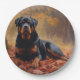 Rottweiler in Autumn Leaves Fall Inspire Paper Plate