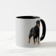 An inherent protector, the Rottweiler is self-confident and responds quietly and with a wait-and-see attitude to influences in his environment. The Rottweiler is basically a calm, confident and courageous dog with a self-assured aloofness that does not lend itself to immediate and indiscriminate friendships. He has a tremendous desire to protect home and family, and is an intelligent dog of extreme hardness and adaptability with a strong willingness to work, making him especially suited as a companion, guardian and general all-purpose dog. Robust and powerful, the Rottweiler is happiest when given a job to perform. His intelligence, endurance and willingness to work make him suitable as a police dog, herder, service dog, therapy dog, obedience competitor and devoted companion. He is medium in size and his coat is black with rust to mahogany markings. This will make a great gift for you or any Rottweiler lover you know.