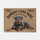 Rottweiler Personalised Dog lover welcome doormat. This welcome mat can be personalised with your dog’s name, the slogan can also be changed or you could use a picture of your own dog (make sure it's transparent). Text reads: Samson lives here…. All treats welcome (can be customised)