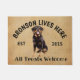 Rottweiler Personalised Dog lover welcome doormat. This welcome mat can be personalised with your dog’s name, the slogan can also be changed or you could use a picture of your own dog (make sure it's transparent). Text reads: Bronson lives here…. All treats welcome