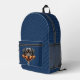 A series of cute puppies unzipping on the front pocket of these backpacks done up with a denim cloth like design