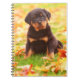Rottweiler Puppy Sitting In Autumn Leaves Notebook