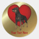 Handsome Rottweiler on a red heart dog sticker. Replace your text in the template, or delete for no text. Click on Customise to change font size, style, and colour. Contact me with any design questions or requests. This image is available on many products in my store. Visit my gallery to see more animal lover items. Thanks for stopping by Smilin' Eyes Treasures.