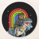 Rottweiler Riding Dinosaur T rex Rainbow Round Paper Coaster