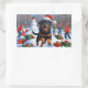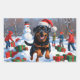 Rottweiler Running in Snow with Christmas Hat Rectangular Sticker
