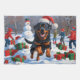 A powerful Rottweiler runs happily through the snowy winter scene, wearing a festive red Christmas hat. This bold design highlights the breed’s strong build, loyal nature, and confident personality while capturing the warmth and joy of the holiday season. A striking winter moment full of festive cheer.