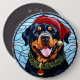 Rottweiler Stained Glass Christmas 6 Cm Round Badge