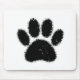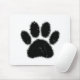 A black dog paw print cartoon style. Design with distressed effect applied to image. Product and gift idea for people that love dogs.