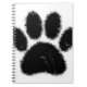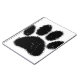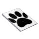 A black dog paw print cartoon style. Design with distressed effect applied to image. Product and gift idea for people that love dogs.