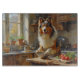 Add elegance and warmth to your kitchen with this Rough Collie design featuring a graceful pup cooking in a cozy setting. With its long flowing coat, gentle expression, and intelligent personality, this artwork captures the breed’s timeless beauty and charm.