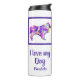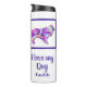 Rough Collie pet dog silhouette purple, pink, yellow and blue digital abstract pattern. This thermal tumbler is sure to put a smile on any dog lovers face. Plus, it's eco-friendly, so she can keep it for years to come. Change ‘I love my dog’/ ‘Name’ with any text you like on both sides of the bottle.