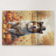 Rough Collie In Autumn Leaves Thanksgiving Art Jigsaw Puzzle