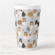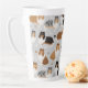 Cute Rough Collie dogs sit and stand and rollover with sable, tri-colour, merle and white coats with scattered dog bones and pawprints pattern.