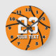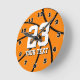 Round basketball wall clock with custom number and text. Cool sports gift for home, office or club. Personalizable design.
