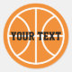Round basketball stickers for favours or as envelope sealers. PErsonalizable design with custom text and background colour. Orange ball. Atheletic theme. Cute design for kids Birthday or sports themed baby shower.