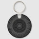 This round keychain features intricate black mandala art with white lines. The colors are customizable by clicking on Edit design.