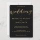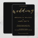Elegant round gold foil wedding invitations with customisable text printed on black background