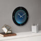 A black clock with an atmospheric blue and aqua face. Numerals in silver compliment this design . Note :This is not a led product