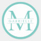 Bold and classic turquoise and white round customisable monogram initial and name favour label. Fun for an elegant and modern Bat Mitzvah celebration, sweet sixteen, 16th birthday party, Quinceanera, baby shower, bridal shower, wedding, or everyday personal stationery. Visit the Paper Grape Zazzle shop for coordinating party goods, stationery, and invitations.